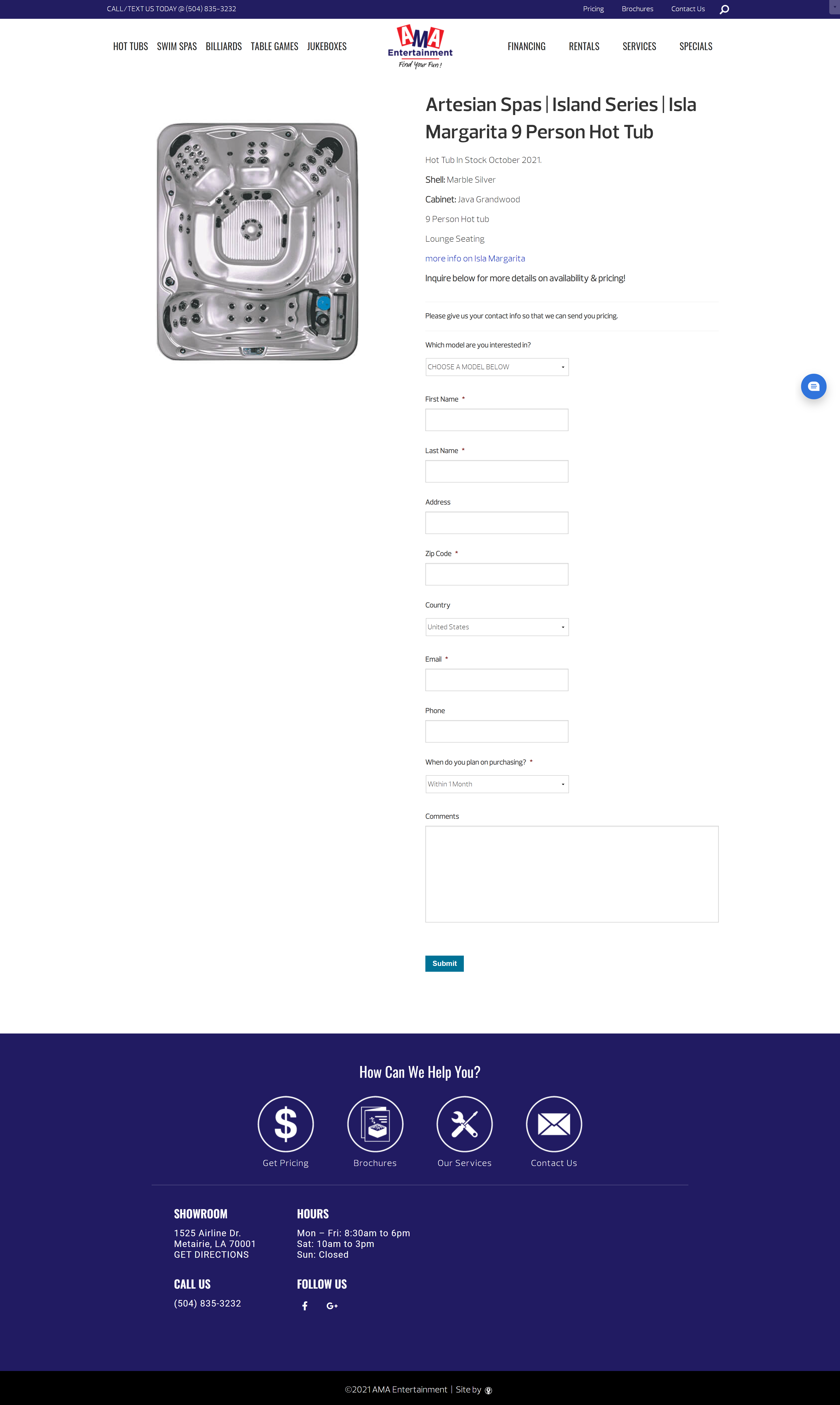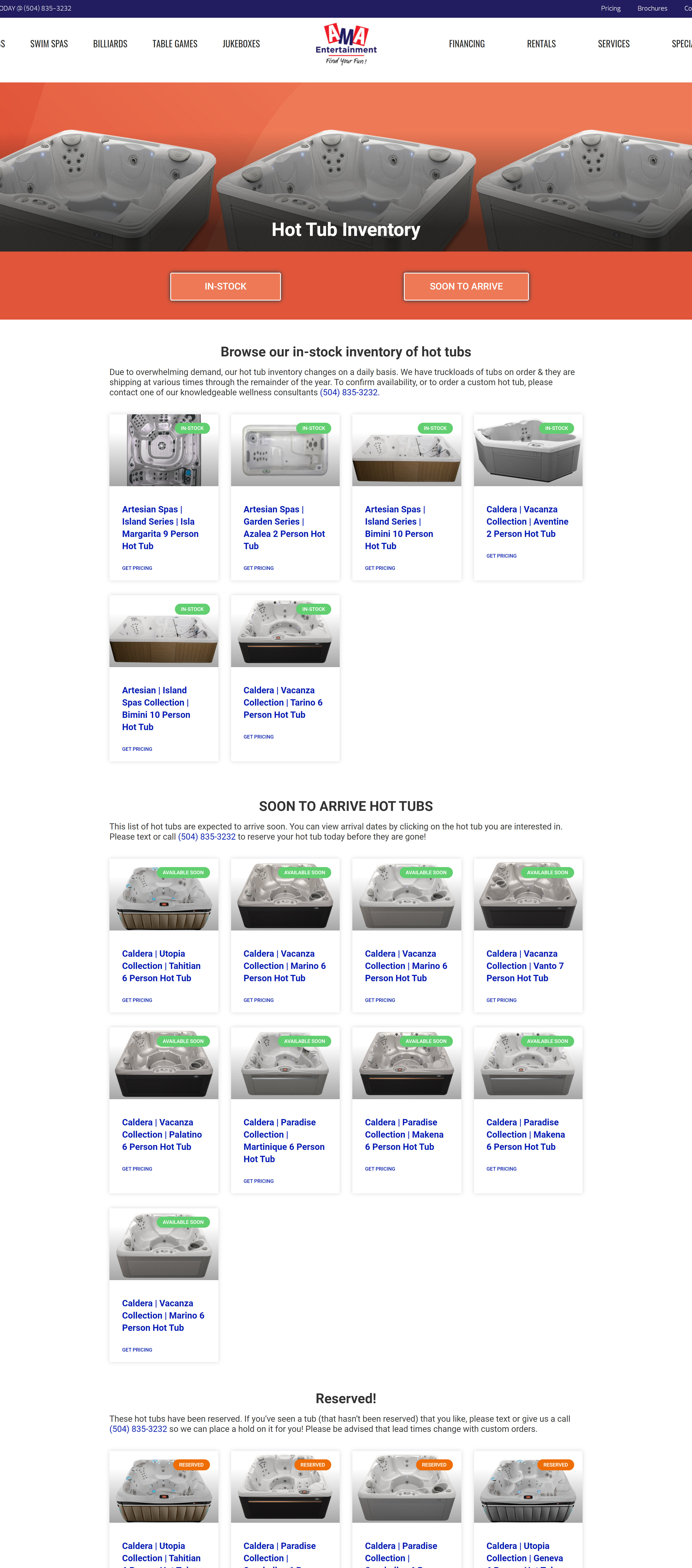 AMA Entertainment is a dealer website for hot tubs and recreational products located in Metairie, Louisiana. In collaboration with Watkins MFG, DesignStudio designed and developed their website as well as a functional inventory page for the client to track the status of item availability in their Showroom.