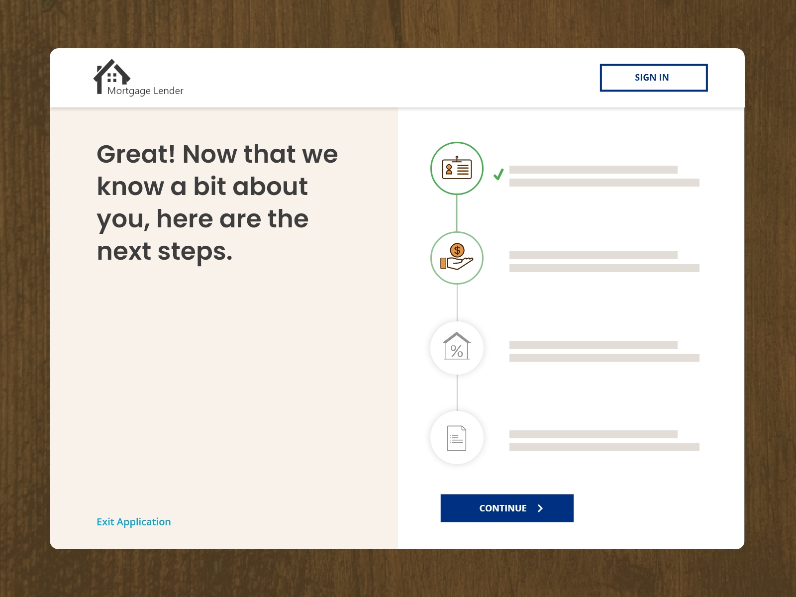 Our client was interested in seeing designs for a mortgage application user experience. I referenced current software on the market to design a seamless, step by step application process for simple document uploads and updates.